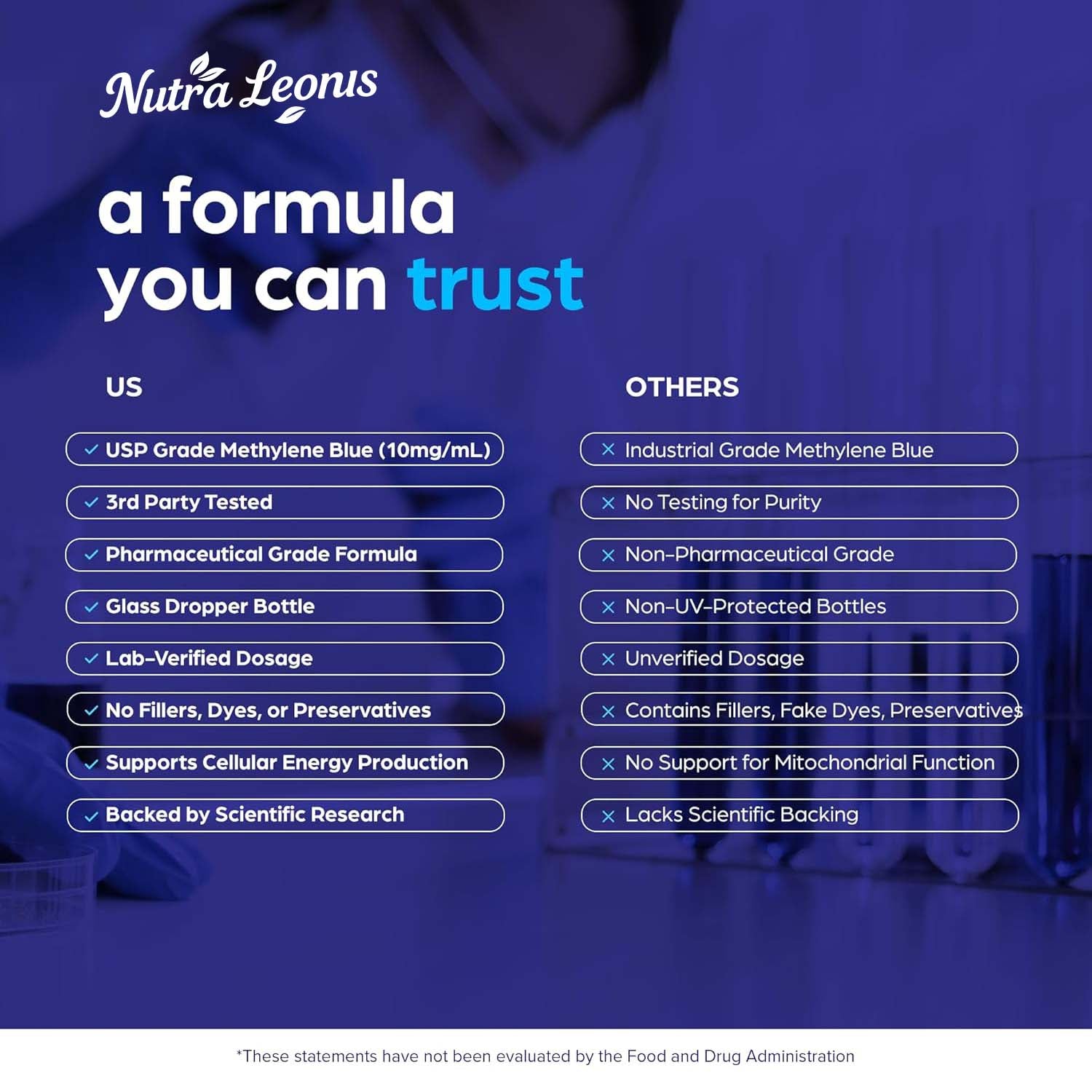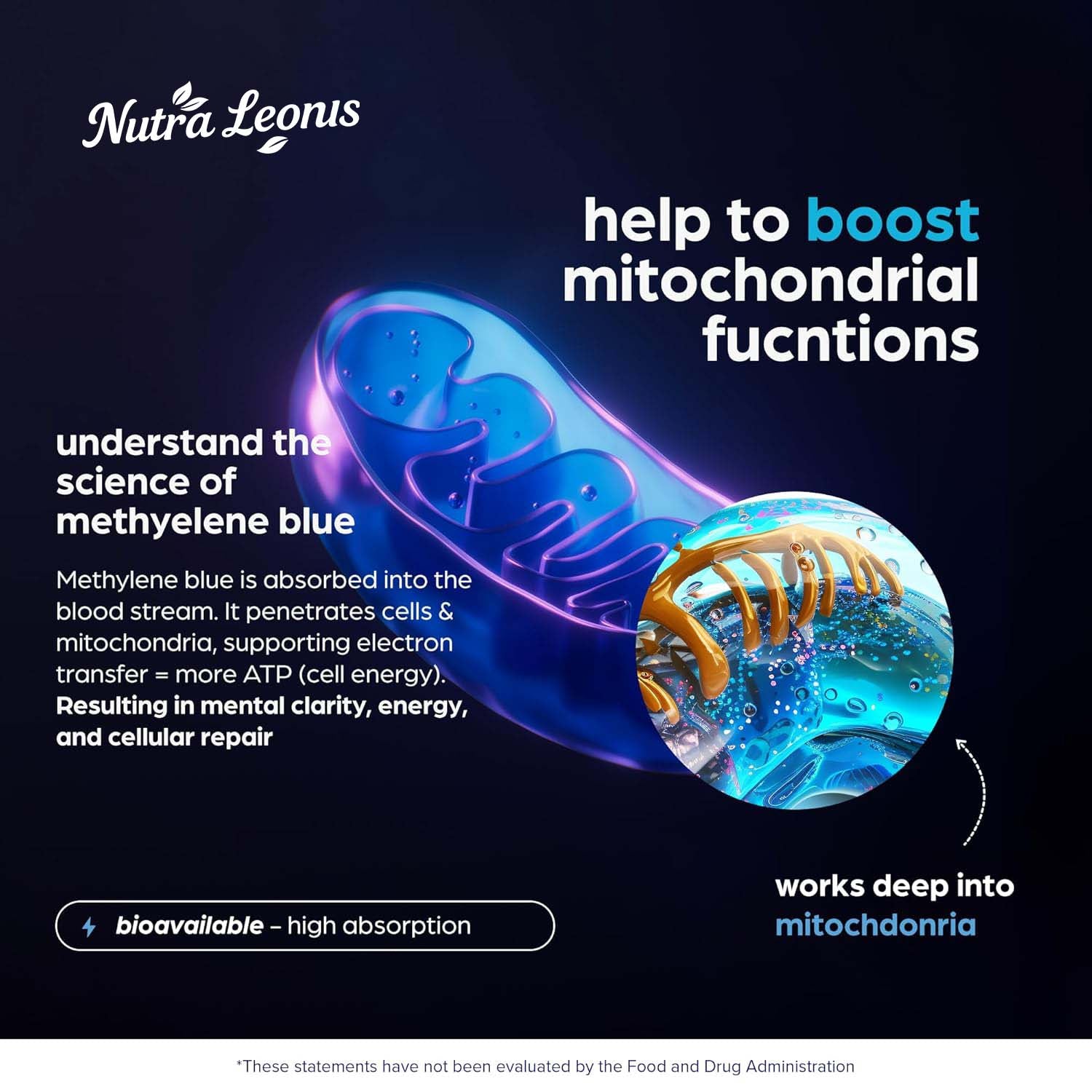 NUTRALEONIS Methylene Blue Pharmaceutical Grade 2oz– USP Grade 1% Solution with Balanced Electrolyte SolutionThird-Party Tested Brain Health Supplement for Humans –No Formaldehyde High Cognitive Support